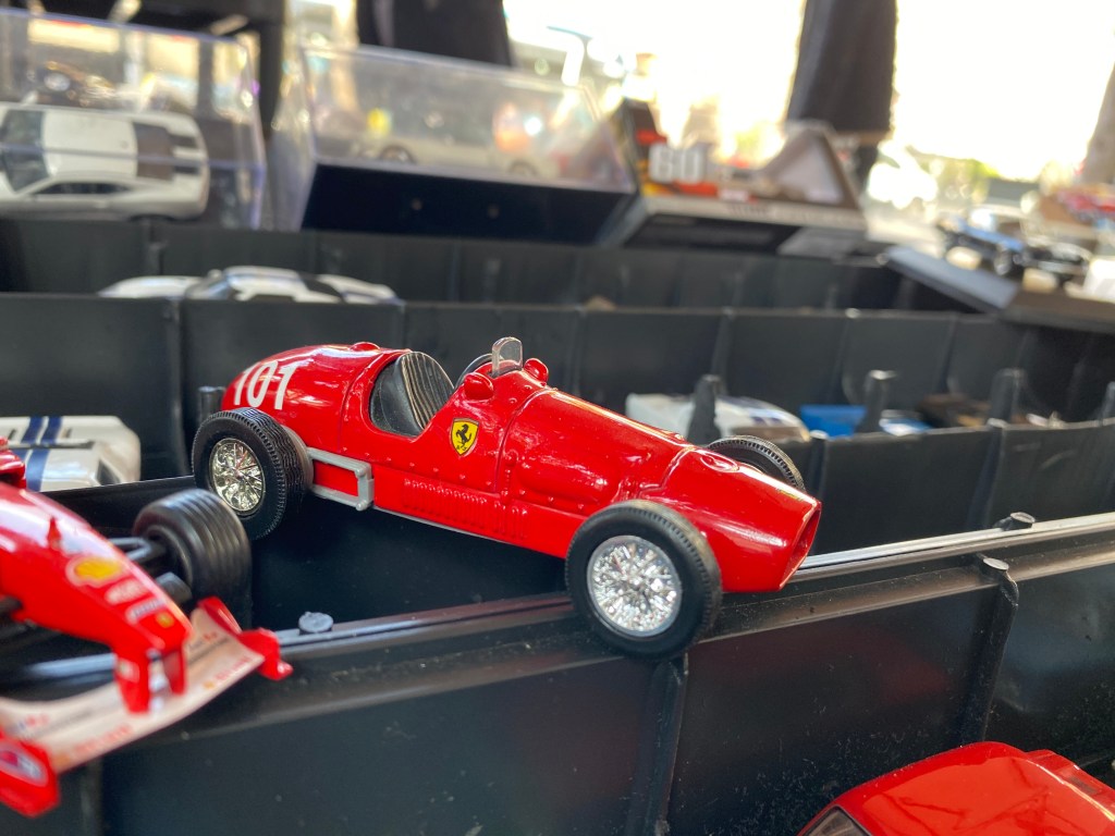 On dit que ce qui diffère l’homme de l’enfant, c’est la taille de ses jouets. Mais ce n’est pas tout à fait vrai. Il y a beaucoup d’anciens enfants qui restent tanqués dans un monde mini mini. Prenez ces fans de petites voitures. Ils se souviennent d’avoir fait évoluer leurs Dinky Toys et autres Solido sur la table basse de leur enfance encombrée de cendriers et de Télé 7 jours, d’avoir provoqué des accidents improbables entre une Peugeot 203 et une Simca 1000, ils se souviennent d’avoir contemplé dans la vitrine du marchand une rutilante Ferrari sans pouvoir l’acheter. Ils l’avaient bien mise pourtant sur la liste de Noël, mais le grand barbu avait préféré lui livrer un joli pull a carreaux. Quel imbécile. Alors 30 ans plus tard, ces vieux gamins se sont constitués une belle collection de petites voitures bien à eux. Le plaisir avait changé il avait pris une nouvelle saveur, mais la nostalgie était encore là. Plus d’accidents, plus de carambolages, le prix les pièces dénichées dans les brocantes et des vides greniers du dimanche était bien trop élevé pour satisfaire un bonheur de voir les voitures abimées. Et dire que pendant ce temps-là leurs sœurs jouaient à la Barbie ou à la Bella. Moi je jouais à la GT 40. Vrop, vrop, vroap. Oui, c’était Michel Vaillant qui conduisait sur la moquette. C’est bien plus tard que je lui préférais Ragnotti qui rime avec Gordini. Un jour je vous parlerai des ferrovipathes.