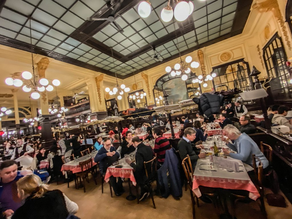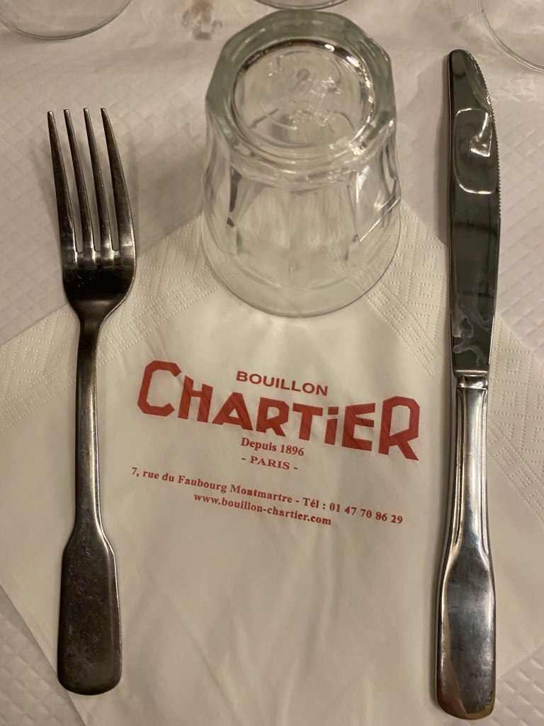 On m’avait parlé de ce restaurant « où, vois-tu, me disait-on, le garçon inscrit la commande sur la nappe en papier et fait l’addition avec son stylo à la fin du repas. » Je pensais que c’était une légende, ou une pratique d’un autre temps. Puis on m’a amené chez Chartier. Bouillon-Chartier. Une brasserie qui vous plonge dans le Paris des années 1900. Il semble que rien n’ait changé depuis l’époque où les calèches faisaient vibrer le pavé des grands boulevards parisiens. Plafond qui culmine à des hauteurs stratosphérique, serveurs en chemise blanche et tablier noir, carte sans chichi, et, comme promis, la prise de la commande (et l’addition) notées en écritures presque hiéroglyphique sur la nappe en papier. Comme promis, une expérience étonnante, loin de la gastronomie moléculaire ou de ce qui fut la « nouvelle cuisine ». Car si vous recherchez des saveurs de poivre rose et de menthe fraiche, passez votre chemin. Ici c’est (suivant arrivages) terrine de campagne, frisée aux lardons, tête de veau sauce gribiche, andouillette grillée, quenelle de brochet. Et d’autres trésors à la française encore et encore. Bouillon-Chartier, on aime ou on déteste. Moi j’ai aimé.