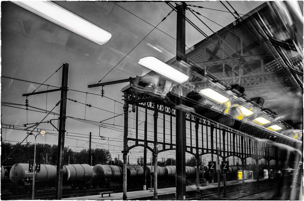 Qu’elles imposantes comme des cathédrales élevées à la gloire du voyage, ou des plus modestes, comme une simple porte basse pointée vers l’ailleurs, les gares m’ont toujours fascinées. Jeune bidasse, tout de bleu vêtu, et sac sur l’épaule je me fondais dans la foule indifférente, vieux briscard chenu je me laissait séduire par une bière sur le zinc d’un buffet impersonnel au charme sans intérêt. Dans ces halls aux plafonds immenses j’y ai perdu mes pas, j’y ai attendu un amour, j’y ai rêvé de l’éclat métallique des voitures bleues aux filets d’or de l’Orient express. Avec toujours le même constat des plus désespérants, il y a tant de choses à découvrir au-delà de l’aiguillage que jamais nous ne pourrions arriver au bout du voyage.
