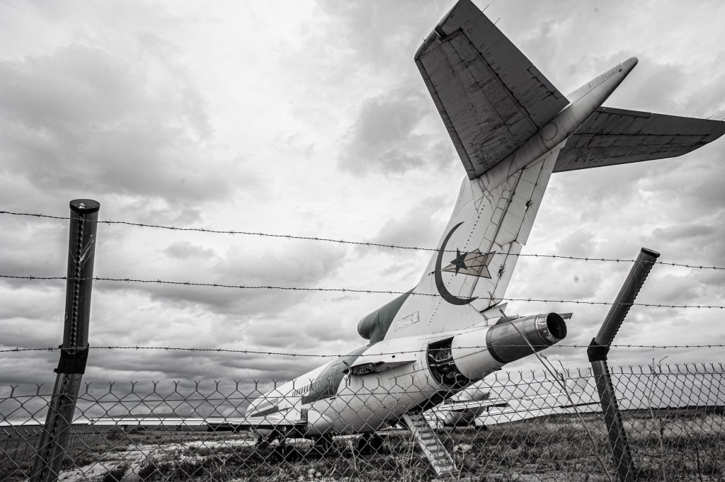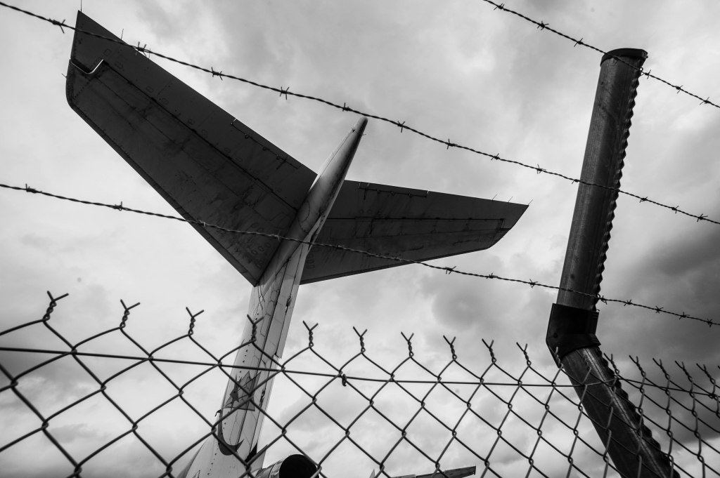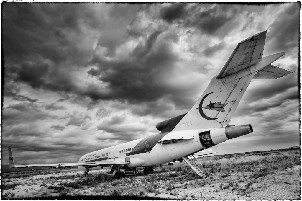 Hier encore leurs ailes parcouraient le vaste monde, emportant avec elles les amateurs de vastes horizons. Et puis un jour ont leur a dit qu’ils étaient trop âgés, que leur confort n’intéressaient plus les voyageurs, que leurs cendriers étaient totalement anachroniques, voire arrogants et que leur appétits étaient trop insondables. Alors, gentiment on les a remisé dans un coin de l’aéroport pour que leurs hublots puissent encore apercevoir les jeunes générations prendre leurs envols. Tout compte fait, les vieux patientent, font ami-ami avec la rouille et laissent le soleil craqueler le skaï des sièges. Les instruments de bord se figent dans l’attente d’un nouvel appel de l’air. Mais tout compte fait, les vieilles carlingues ne font qu’attendre les jeunes cockpits qui un jour viendront leur tenir compagnie. Il faut savoir descendre il faut savoir revenir sur terre. La mort fait son métier