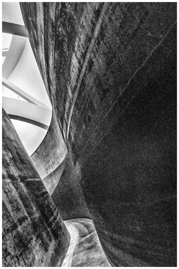 Je suis allé au musée Guggenheim de Bilbao pour son architecture. Le travail, la vision, le style Gehry m’ont toujours plus, votre même fasciné. Pour un photographe il est toujours agréable de tenter le captage, la captation des reflets de la carapace du lieu. Un jeu de lumière, un jeu de dupe. J’étais venu pour le dehors, c’est le dedans qui m’a happé. Au sens propre. Je fus avalé, dévoré, englouti et digéré par l’installation toroïdale monumentale de l’artiste Richard Serra. Le terme « monumental » ici n’est pas galvaudé. Il s’agit de plaques d’acier auto patiné -dit aussi « corten »-, des feuilles d’acier qui s’enroulent sur elles-mêmes en ellipse doubles, laissant juste, ici et là, une fente, une porte plus étroite que basse pour que le visiteur puisse pénétrer à l’intérieur de la matrice. Une invitation impossible à refuser. Il est trop tard. Là il sera alors guidé par son instinct. Il se perdra dans l’étroit couloir qui se referme sur ses pas. Le titre de l’œuvre Torsion elliptique résume en lui-même l’effet (fou) que ça fait. Il se sentira finalement léger au milieu du poids considérable des panneaux qui dansent dans l’espace. Il se sentira protégé. Mais si fragile. Il c’est moi. Vous l’aviez compris. « J’étais venu pour le dehors, c’est le dedans qui m’a magnétisé ».