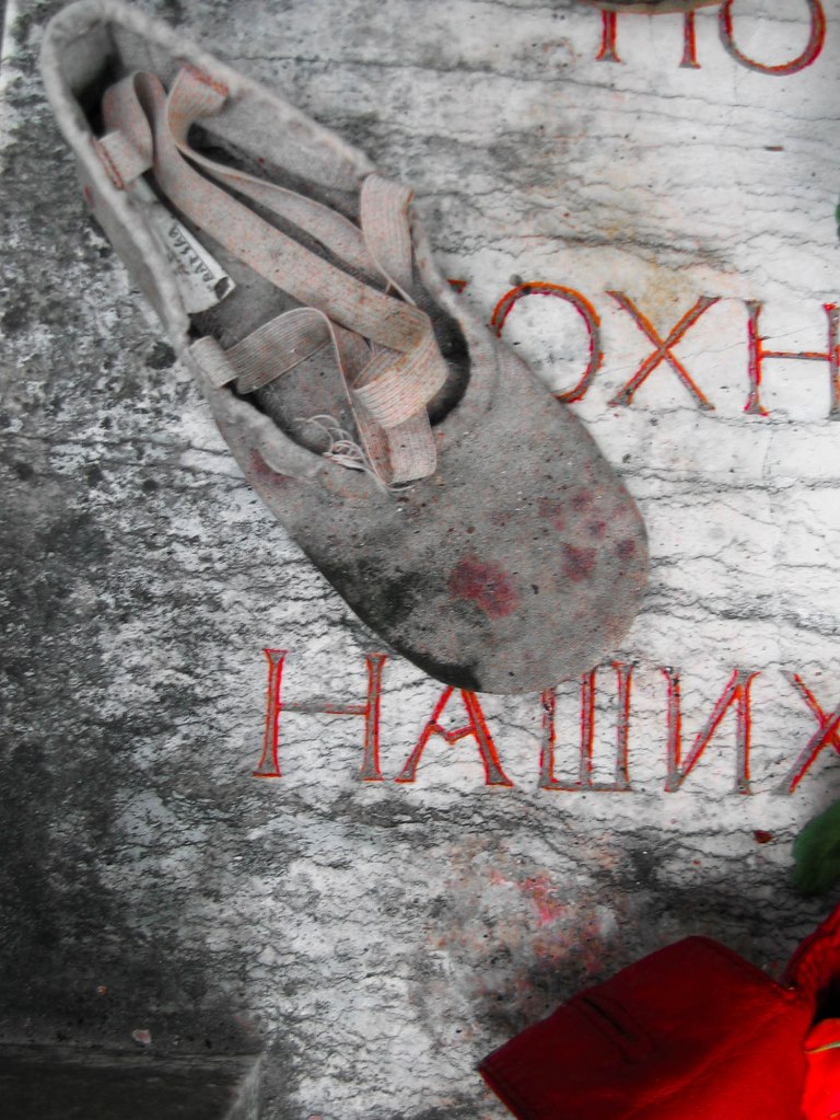 Lors d’un séjour à Venise, j’ai laissé mes pas me conduire au cimetière de San Michele. Le lieu est original, étrange, tellurique, hors du temps et surtout peuplée de nombreux habitants horizontaux. C’est ici que l’on appréhende le mieux le coté éternellement cosmopolite de la ville. J’ai toujours eu un faible pour l’histoire des Ballets Russes, et ce n’est certainement pas dû au hasard que je suis tombé sur la tombe de Serge Diaghilev. Le pauvre homme avait une peur bleue de l’eau, une diseuse de bonne aventure lui avait prédit qu’un jour il mourrait dans un naufrage. Il ne prenait donc jamais le bateau, quitte a laisser les lumières des Amériques luire sans lui. Mais la cartomancienne évoquait certainement un naufrage bien plus symbolique. Celui-ci se concrétise donc ici dans cette île. Le point final de sa chorégraphie de vie. Le plus étonnant est de découvrir des chaussons de danse, usés jusqu’à la corde, qui jonchent sa pierre tombale. Souvenirs surannés de danseuses d’un autre temps qui se sont égarées elles aussi, un jour, devant le souvenir de l’amant torturé de Nijinsky.