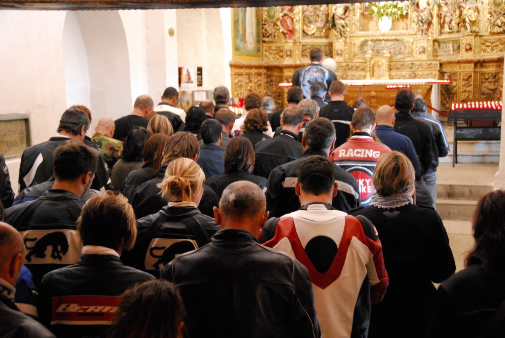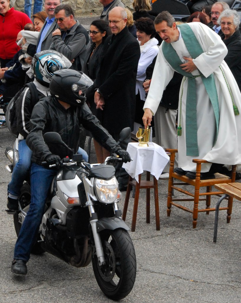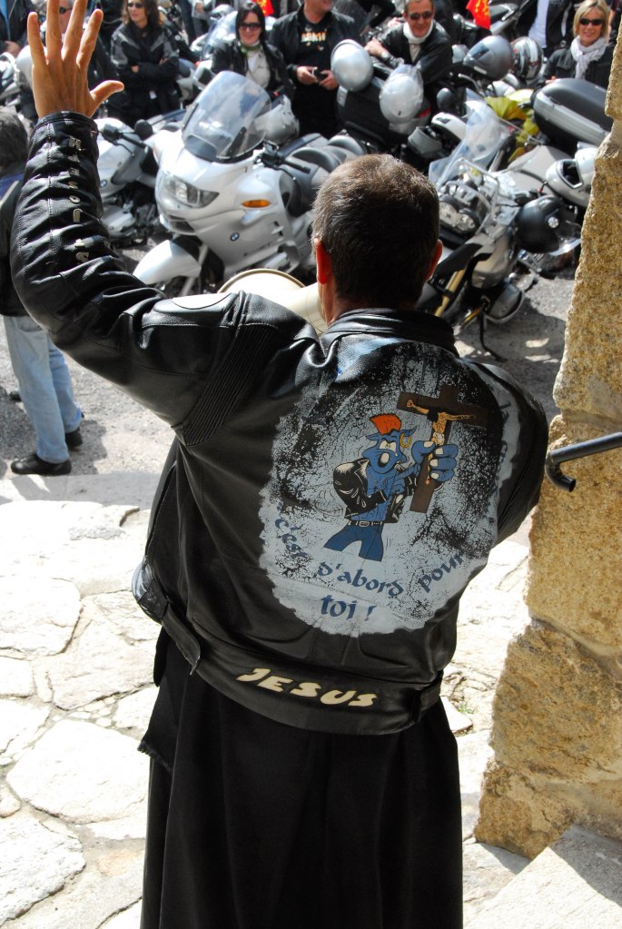 Il y a quelques années j’étais monté en Cerdagne pour « l’aplec des motards ». Une cérémonie religieuse en plein air destinée essentiellement aux tenants de la bécane. Cérémonie étonnante et bien suivie par quelques centaines de femmes et d’hommes en blouson de cuir arborant des patchs de couleurs toutes différentes. Le prêtre lui-même à un moment donné, a enfilé son zonblou blanchi sous le harnais et les kilomètres face au vent. Tout le monde c’est ensuite retrouvé dans la chapelle de Font-Romeu pour une visite recueillie des lieux et entonner aussi des psaumes. Le tout sous le regard mi amusé, mi surpris, et mi protecteur de quelques sœurs. Oui, s’il y a trois « mi ». C’est que ces sœurs ont un cœur gros comme ça, et ne font rien à moitié. Et les cœurs qui battent sous les cuirs craquelés des bikers ont tous besoin, eux aussi, d’amour. Qu’il soit terrestre et/ou divin.