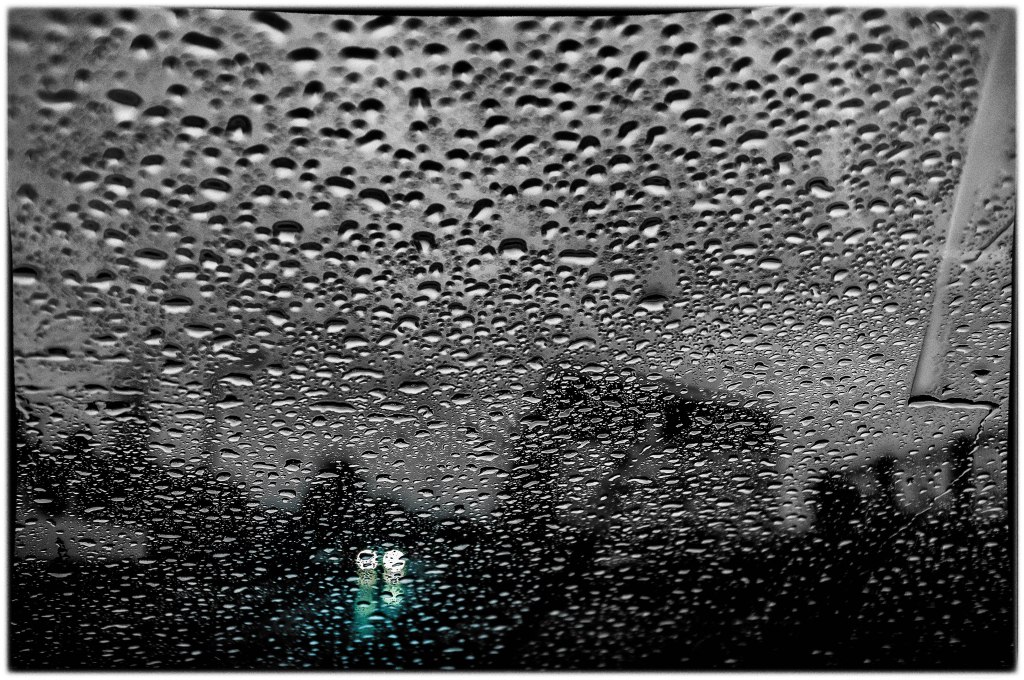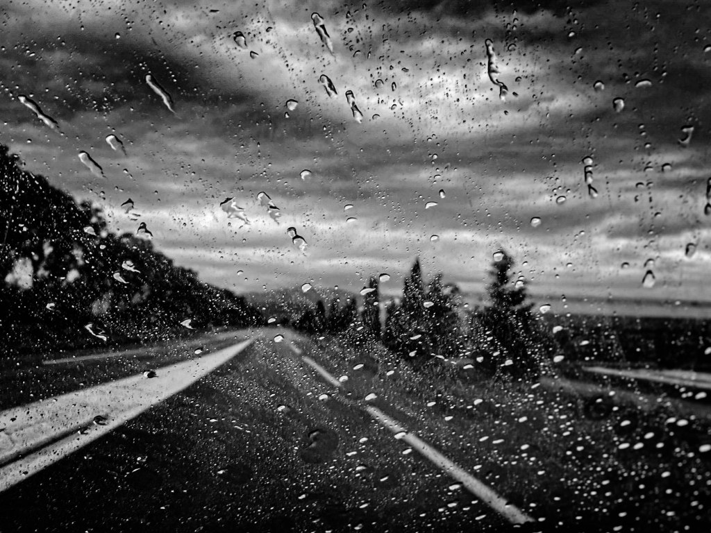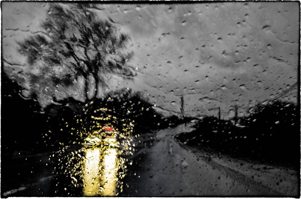 Rouler sous la pluie, avec le droit de se perdre et donc d’être libre, voilà un plaisir auquel je me lasse parfois aller. Seul dans la plénitude de la voiture, chauffage réglé juste comme il faut et dans l’habitacle, le cockpit, des musiques des années anciennes rythmées par le métronome des essuies glaces. On baigne dans un cocon sécuritaire et intime sans égal. Ou égal à celui des petits matins sous la couette, lové dans les bras d’un amour parfumé, soyeux et velouté. Une balade sans fin sur une route dont on ne connaît pas encore le terme. On est à la fois dans un Sautet et dans un Lelouch, en attendant que le générique commence à monter lentement sur l’écran de son pare-brise.
