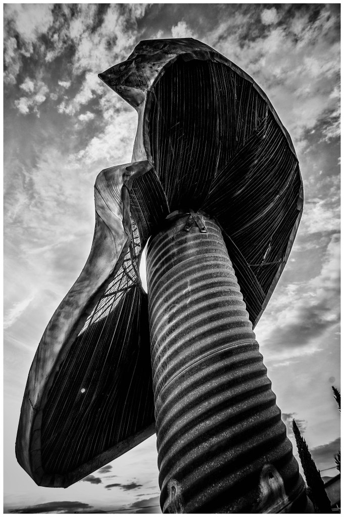 Je suis souvent passé devant cette sculpture étrange en arrivant dans la plus belle sous-préfecture de France, j’ai nommé : Céret. Longtemps j’ai cru que c’était la représentation d’un bouchon de champagne un peu décati, un peu défraichi, un peu anéanti. Tout ça parce que la ville possédait depuis des lustres une usine de fabrication de bouchons en tout genre, usine mondialement connue, Le bâtiment qui trônait derrière ce « bouchon » devait appartenir à ce fabricant. Puis je m’y suis approché, et là, désillusion pas de bouchon mais quelque chose qui s’apparentait bien plus à une oreille. Elle aussi un peu décatie, un peu défraichie, un peu anéantie. Cela n’empêche pas que c’était une oeuvre d’art. Mais aucune plaque, aucun cartouche ne donnait d’information sur cette oreille. Qui l’a créée, qui l’a produite, en quelle année, pour quelle occasion, et aussi pourquoi ici ? Même Internet qui pourtant sait tout, ne m’a pas renseigné. Le mystère de l’oreille cassée reste entier.