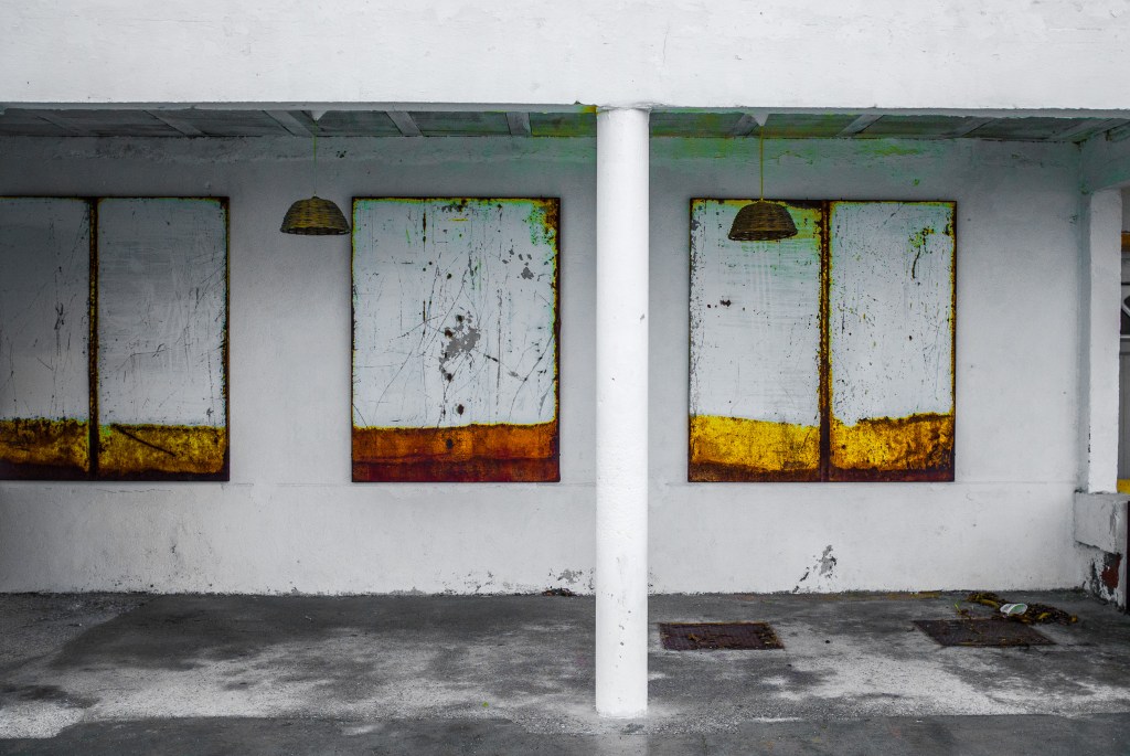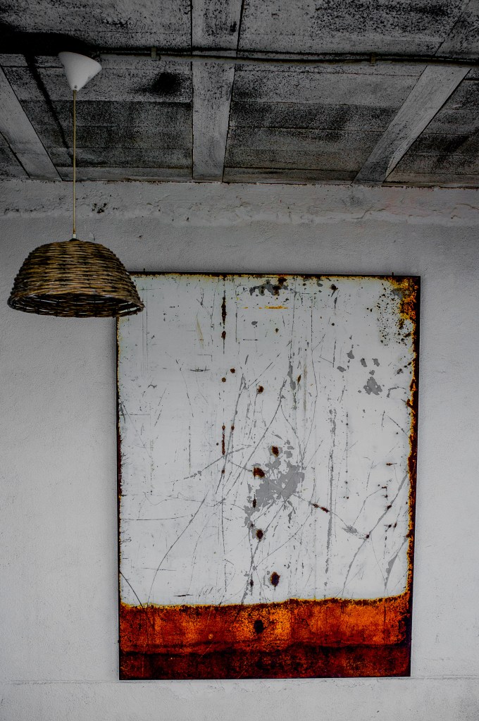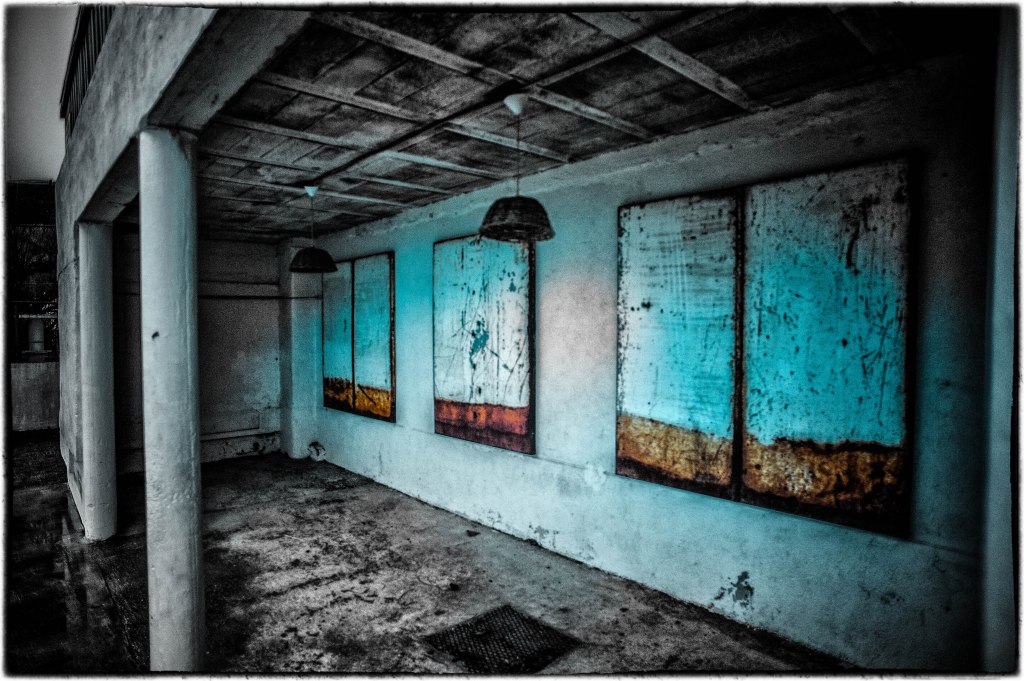 Le Racou, un charmant quartier d’Argelès-sur-Mer a l’avantage d’être construit pratiquement sur la plage. Devant les maisons, quelques centaines de mètres de sable et puis la mer. Vue imprenable sur les moutons d’argent en hiver, sur le cul des touristes en été. Comme toujours les avantages se payent. Quand en hiver la mer a l’idée d’aller s’amouracher du vent, les vagues se déchaînent et tout ce qui est proche de leurs sarabandes en prennent plein les mirettes. Les maisons en premier. Alors les habitants protègent les façades et les fenêtres avec des panneaux métalliques. Et ceux-ci, comme des plaques photographiques, immortalisent dans leur chair le bonheur du mariage de l’eau, du sel, du vent et du sable. Une belle association. Et voilà comment, hors saison, ces maisons peuvent devenir des galeries d’art avec des volets ayant la mémoire dans la peau. A voir avant que le propriétaire n’ait la bonne idée de les proposer à un marchand d’art parisien. « Souvenir d’un été en Roussillon ». On a connu le fauvisme, voici venu l’époque du « métallisme ».