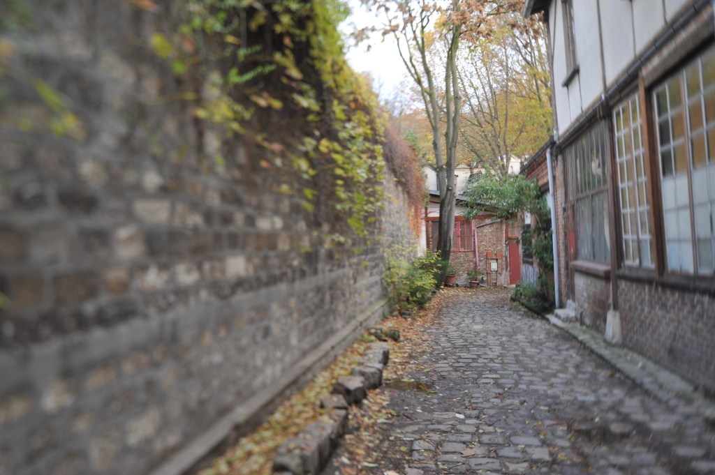 Au hasard d’une balade parisienne, (je vous ai déjà dit que j’étais amoureux de Paris ?), je suis tombé sur un endroit assez « extra-ordinaire », un quartier totalement hors du temps en pleine capitale. Ou plutôt deux zones contiguës ou presque, la Villa Riberolle et la Cité Aubry. Des allées pavées, des maisonnettes faites de murs en briques, certaines illuminées des verrières propices aux ateliers d’artistes. Le genre de lieu qui fait rêver. Rêver d’habiter un loft, même petit, même mal isolé, même à retaper, ici à deux pas d’un studio de musique et de danse, d’un artiste plasticien et d’une gouailleuse parigote qui a connu toutes les débauches de la vie parisienne. Un pied-à-terre tout simple. Il y a aussi, je l’ai ressenti, réellement ressenti, la présence d’ondes rassurantes d’artistes mondialement connus. Isadora Ducan, Modogliani, Chopin, Oscar Wilde, la Callas, Morrison habitent à demeure tout à côté. C’est dire si c’est calme.